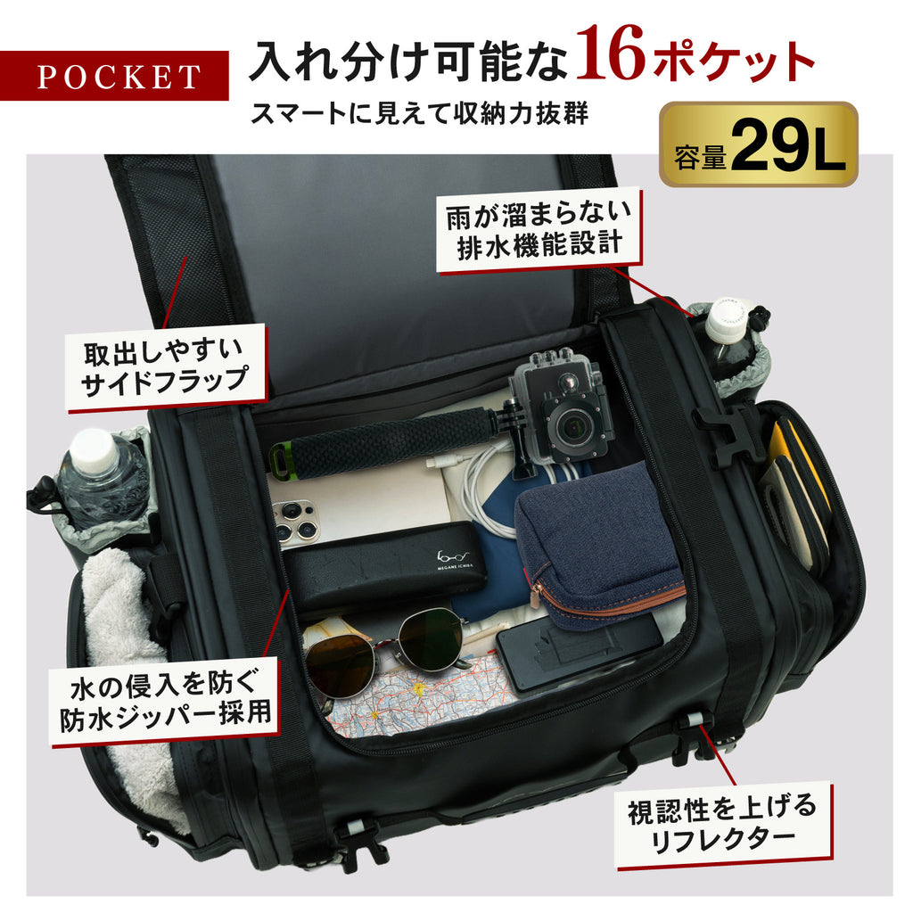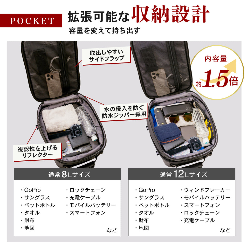 ✅【雨の侵入を防ぐ細かな工夫】バッグ全体の素材は水がかかっても浸透しにくく、高級感のあるPVC素材。ジッパー箇所は防水加工が施されたジッパーを採用されており、ライダーの敵である雨の浸透・侵入を防ぎ荷物を守る設計になっています。