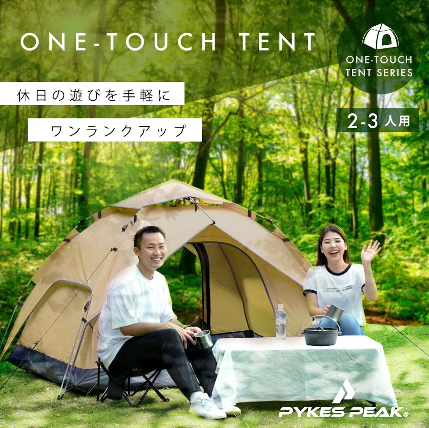 PYKES PEAKワンタッチテントシリーズは、”簡単設営”をとことん追求しました。初心者でも簡単にお手軽にキャンプを楽しんで頂ける2~3人用テントです。