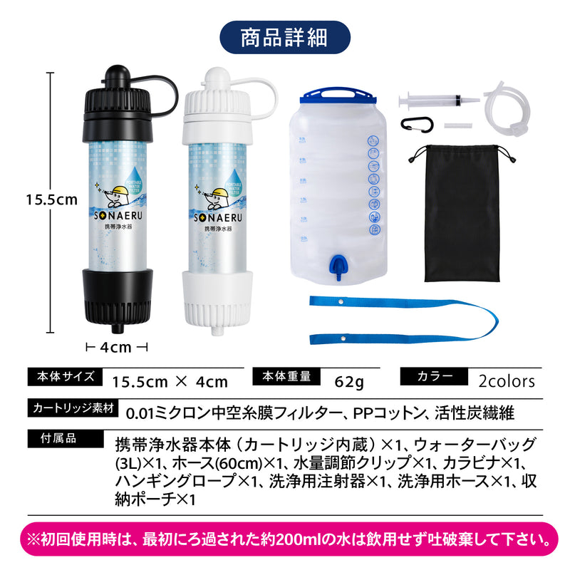 99.9999%除去の高性能「ソナエル 携帯浄水器」