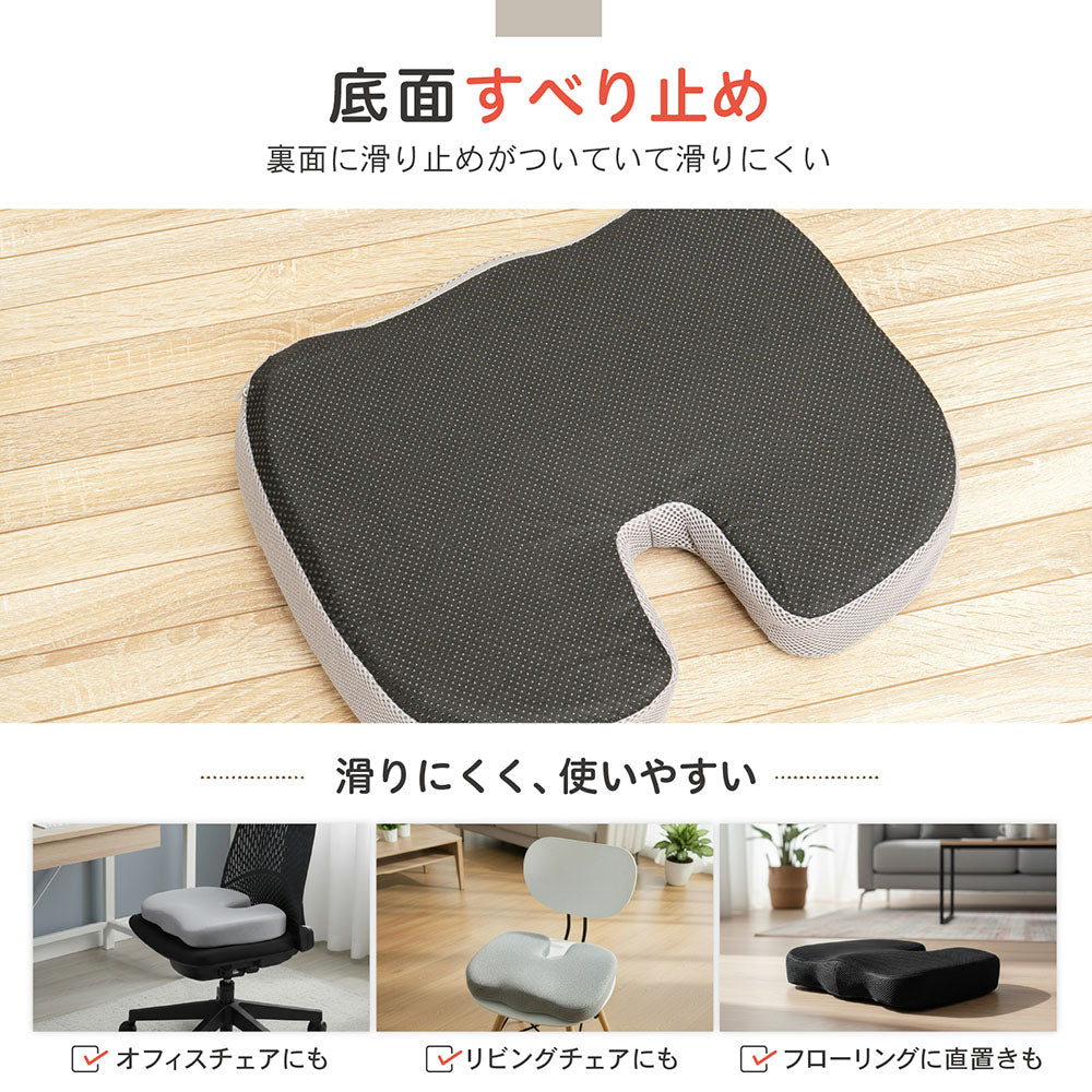 クッションの裏面には強力な滑り止め加工が施されています。椅子から立ち上がったり座り直したりしても、クッションがズレ落ちるストレスがありません。