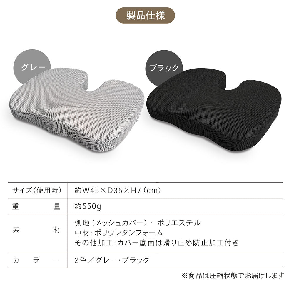 - 素材:(中材)高密度低反発ウレタン、(カバー)通気性メッシュ