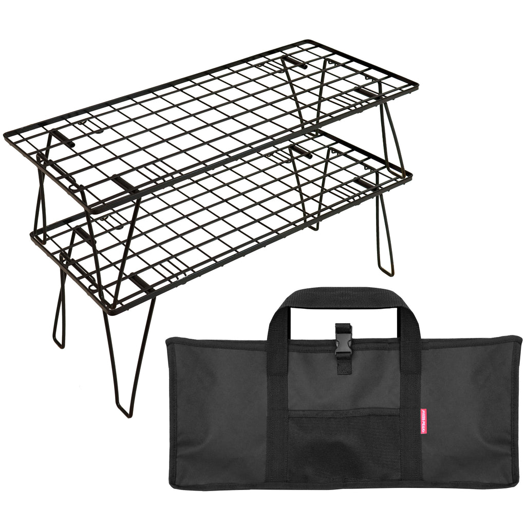 【キャンプサイトをさっと快適空間に!】組み立て簡単、脚を開いて留めるだけ!あとはお気に入りのキャンプグッズを自由にラックに配置して、しかも2段、3段と重ねて使えて、小物もおしゃれに配置すれば自分だけの快適なキャンプサイトを簡単に構築できます。棚としてだけではなく、テーブルや水切り台としても使うことができ、いろいろなシーンで活躍するキャンプの必需品です。